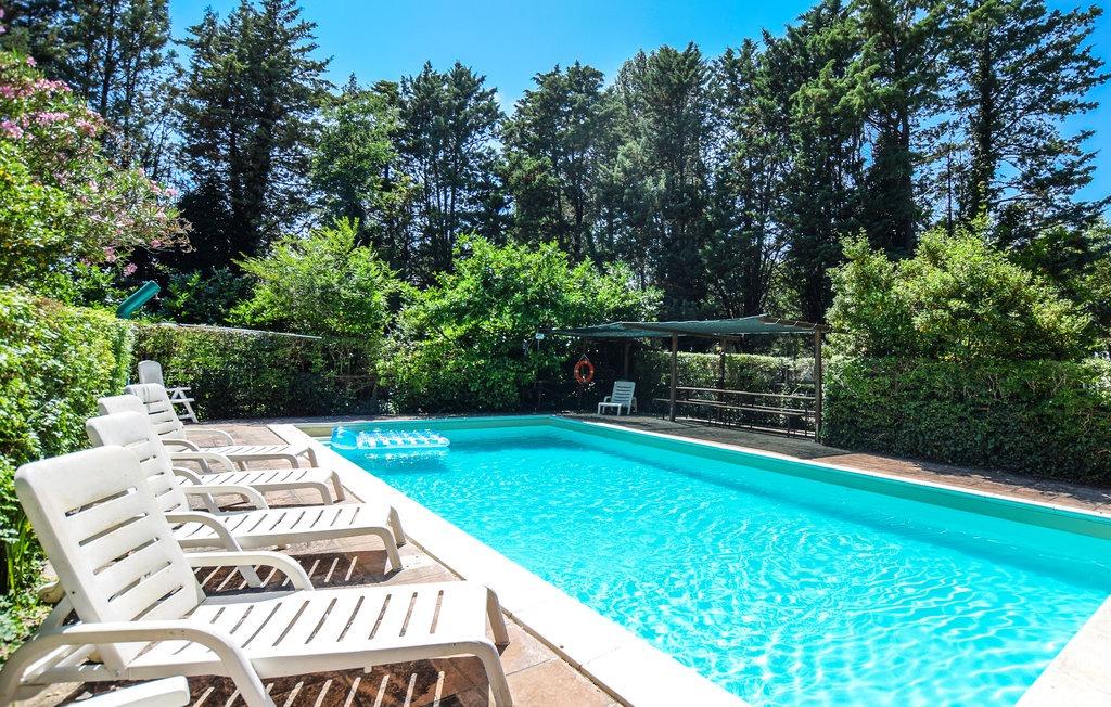 All'esterno, un ampio e ben curato giardino vi attende con una bellissima piscina privata, completa di lettini prendisole: il luogo ideale per trascorrere lunghe giornate estive rilassandosi e rinfrescandosi a bordo vasca. Inoltre, troverete un'area barbecue attrezzata con un grazioso gazebo, un campo da calcio e un parcheggio privato ombreggiato.